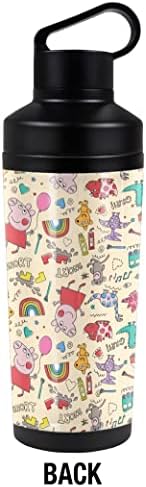 Peppa Pig OFFICIAL Peppa And Friends Pencil Pattern 18 oz Insulated Water Bottle, Leak Resistant, Vacuum Insulated Stainless Steel with 2-in-1 Loop Cap