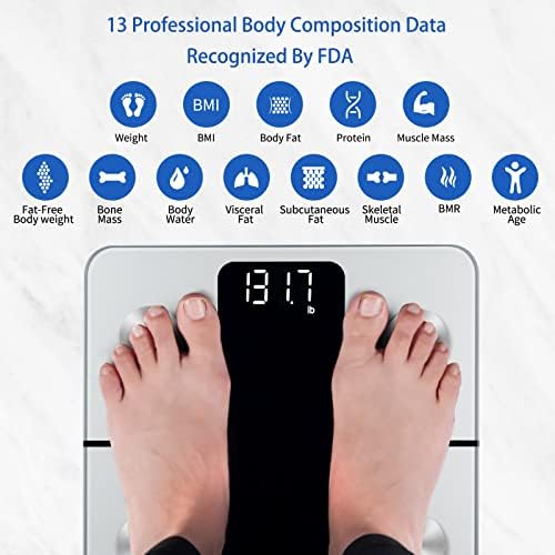 • OPCIÓN DE PRECISIÓN INCREÍBLE - Nuestra fábrica profesional propia se ha centrado en básculas de alta calidad DESDE 2001. Fabricamos la báscula inteligente de peso corporal y grasa corporal con experiencia actualizada, y orgullosamente garantizamos no solo capacidad de 400lb/182kg con alta precisión de 0.1lb/0.05kg, sino también un índice de composición corporal creíble.