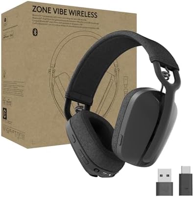 Auriculares Bluetooth Inalámbricos Logitech Zone Vibe con Micrófono de Cancelación de Ruido, USB-A, USB-C, para Microsoft Teams, Mac/PC, Negro