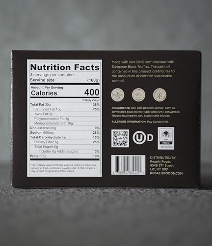Regalis Microwavable Black Truffle Popcorn, Non-GMO Kernels, Real Black European Truffle, 3 Bags