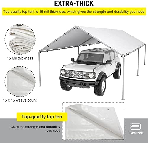 - 【High Quality car canopy】- This carport canopy replacement cover is made of waterproof UV woven polyethylene, Top-quality top tent is 16 mil thickness and 16 x 16 weave count, which gives the strength and durability, which is tear-proof, anti-UV and waterproof, fade resistant , Also features sturdy grommet holes and edges designed to be used for rainwater drainage, Protects your car and boat from rain, wind and snow.