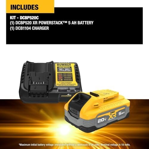 Kit básico de batería DEWALT Powerstack de 20 V MAX, recargable, 5 Ah, iones de litio (DCBP520C)