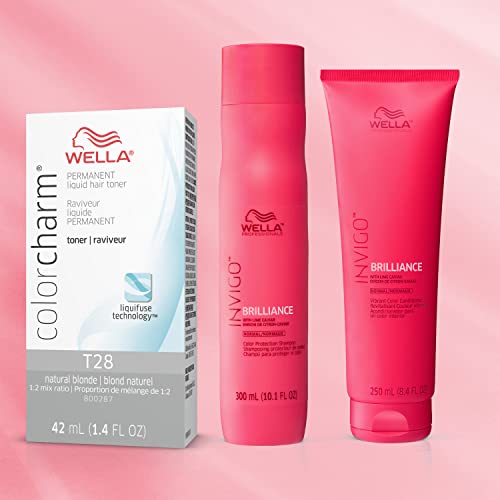 WELLA Color Charm Invigo Brilliance Color Protection Shampoo & Conditioner, For Fine Hair + Hair Toner, Neutralize Brass, T28 Natural Blonde