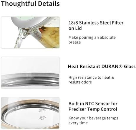 - Superior Material: Heat resistant DURAN Glass and 316L stainless steel heating plate, BPA Free's K2763 is safe in every bite. Strix thermostat makes kettle temperature more accurate and longer lasting