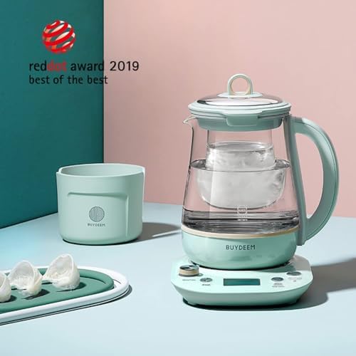 BUYDEEM Health Pot K2763 Lite, Glass Electric Kettle for Tea & Coffee, Hot Water Boiler and Wamer with Stew Pot, Temperature Control, Green, 1.5L