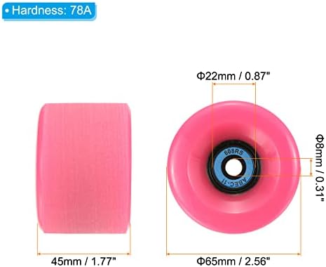 - Color: Pink; Material: PU ; Hardness: 78A; Bearing Size: 22 x 8mm / 0.87 x 0.31 inch(OD*ID); Wheel Size: 65 x 45mm / 2.56 x 1.77 inch(OD*W); Package List: 4 x Longboard Wheels and Bearings Set