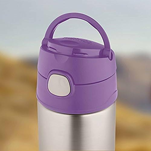 The FUNtainer 12oz Vacuum Insulated Stainless Steel Water Bottle with Straw keeps drinks cold for up to 12 hours. The double wall stainless steel construction is built to handle drops, dings, and everyday roughhousing. It includes an integrated carry handle with a soft-touch grip, making it easy for kids to take with them throughout the day. The silicone straw is covered for protection and can be removed for simple cleaning. For convenience, you can place your FUNtainer water bottle in the dishwasher, though hand washing is recommended. NOT for use with hot liquids. Each FUNtainer also comes with two adhesive name labels that can be firmly attached to your bottle—just write, peel, and stick. Fun for kids and practical for parents!