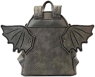 Experience the thrill of Berk with the Loungefly How to Train Your Dragon Toothless Cosplay Mini Backpack. This officially licensed, unisex backpack features a soft shell design with a moveable Toothless dragon on the back, ready to take flight. Measuring 9 inches wide, 10 inches high, and 4.5 inches deep, it's perfect for school or casual use. The backpack is crafted from durable, easy-to-clean vegan leather (polyurethane) and features adjustable shoulder straps for a comfortable fit. It has a zipper closure and two utility pockets, providing ample storage for your essentials. Hand wash only for care instructions.