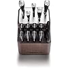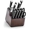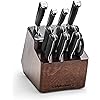 - Set includes 8-inch chef knife, 8-inch bread knife, 6-inch utility knife, 5-inch santoku knife, 3.5-inch paring knife, 8 steak knives, kitchen shears, and sharpening wood block
