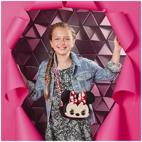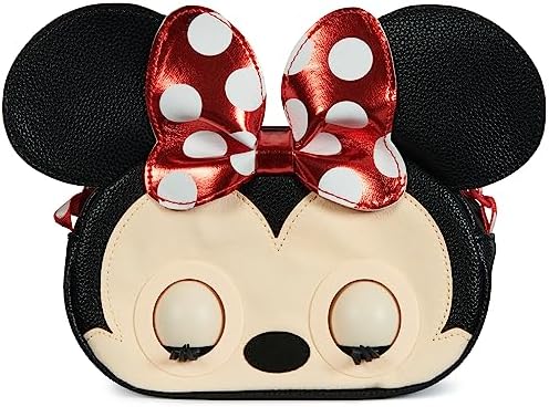 - INTERACTIVE PET AND CROSS-BODY BAG: With her iconic metallic polka dot bow, heart icon eyes and pebbled faux leather, Minnie is the perfect addition to your Disney ears and holiday wear. The adjustable strap is great for all ages