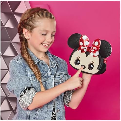 - BLINKS, RESPONDS TO TOUCH: This Disney Minnie Mouse girls’ bag has eyes that really blink. When you’re on the go, she blinks and interacts with you. Hold Minnie’s forehead to charge up a kiss