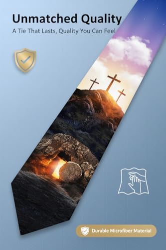 "For we know that since Christ was raised from the dead, he cannot die again; death no longer has mastery over him." Romans 6:9 NIV. Celebrate Easter and all that it means with this beautiful resurrection necktie. Featuring a powerful image of the cave Jesus rose again from and 3 crosses, standing strong atop the mountain. The sun rises behind the scene, its beams reaching into a starry sky. The Three Rooker Necktie CompanyThis original tie design is produced by The Three Rooker Necktie Company - the original creator of the novelty tie and is crafted in 100% microfiber to provide years of quality service.Your satisfaction is 100% guaranteed. In addition to Amazon's return policy, The Three Rooker Necktie Company offers lifetime support on all of their neckties.The Three Rooker Necktie Company is a family owned small business based in the USA. This necktie is proudly designed and printed in the USA.