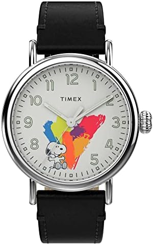 Reloj de pulsera Timex Standard x Peanuts Dream in Color 40mm con correa de cuero, negro y blanco