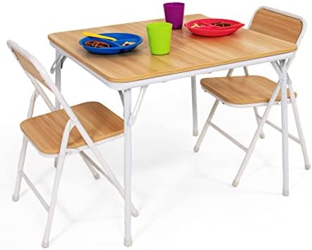 - Complete 3-Piece Set – Includes 1 square folding table and 2 matching folding chairs, perfectly sized for toddlers and preschoolers aged 3–6 years.