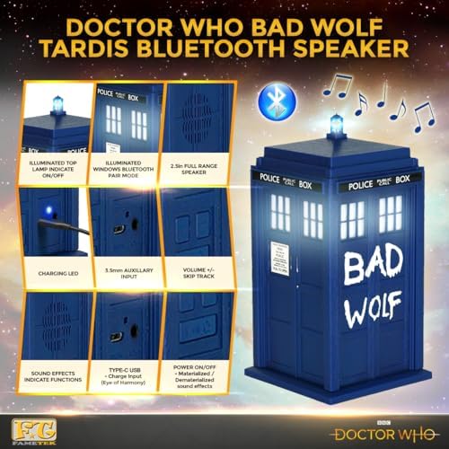 - BEST DOCTOR WHO GIFT: The Doctor Who BAD WOLF TARDIS wireless portable Bluetooth speaker easily pairs with any Bluetooth device and hosts an assortment of amazing features. Its accurate cosmetic detail and sound effects make it one of the all time best Dr. Who collectibles as seen on Mashable and The Nerdist.