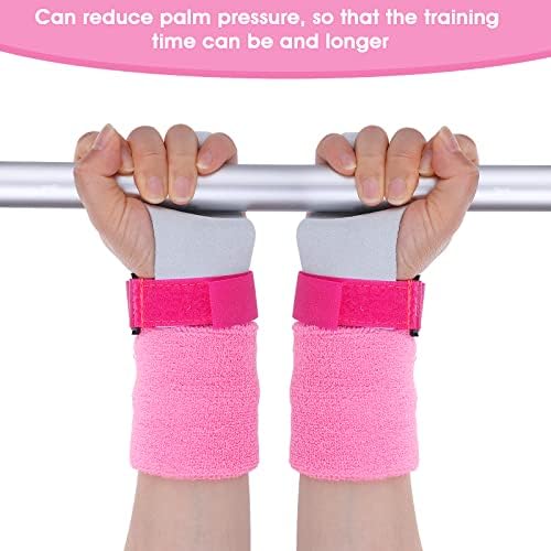 2 Gymnastics Grips Wristbands Sets for Girls Youth Kids, Pink Gymnastic Hand Grips Gymnastic Bar Palm Protection and Wrist Support Sports Accessories for Kids Workout and Exercise (M)