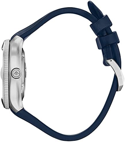 Blue dial enhanced by luminous hands. Silver-tone stainless steel case with a blue polyurethane band. Eco-Drive movement. 200 meters / 660 feet water resistance. Uni-directional Rotating bezel. Convex Mineral Crystal crystal. Solid caseback. Buckle clasp. Screw Down crown. Case size 46 mm. Band 14 mm x long. Citizen BN0231-01L Promaster Dive Watch.