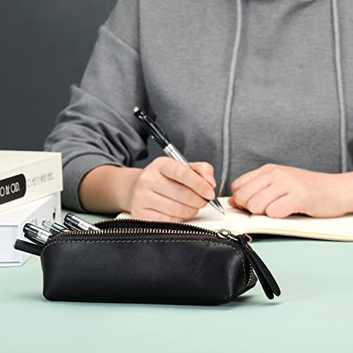 - Exquisite Workmanship:The slim pen pouch is made of high-quality top cow leather by hand,and the top is designed with zipper closure,which is very smooth to open or seal,and convenient to store.The compact size and light weight make it to be carried easily into most any bag with you