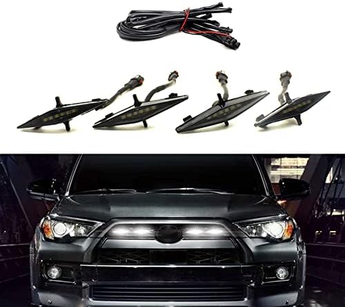 4 PCS White LED Lights, Grille Raptor Lamps Car Accessories with Harness and Fuse Compatible with 2014-2022 Toyota 4Runner TRD Pro Grille (White)