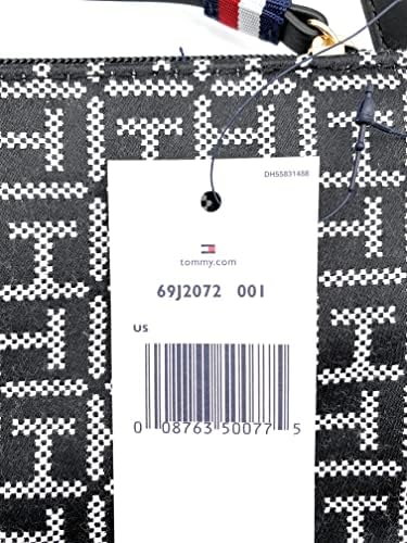Bolso Tommy Hilfiger - Negro/Blanco - Bandolera - Crossover - Bolso de Hombro - 25 x 25 x 3 cm Logo - Bolso de Mano para Mujer 0775, negro blanco