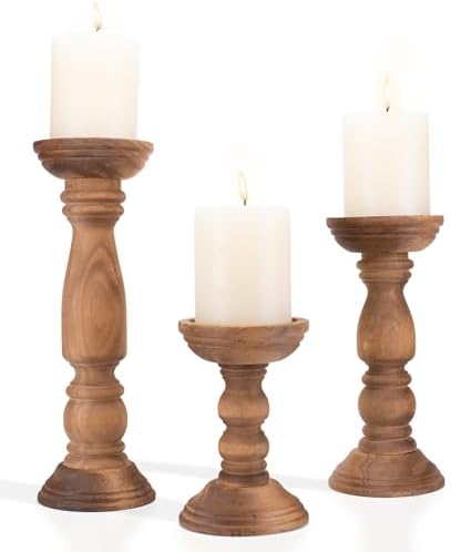- Dimensions: S:12”×4”M:9”×4” L:6”× 4”. wooden candlesticks are perfectly proportioned, featuring varying heights that create an aesthetically pleasing set. They are perfect wood centerpieces for tables, as well as decorative pieces for fireplace mantel decor, coffee table decor, dining table decor.