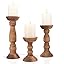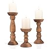 Farmhouse Wooden Candle Holders for Pillar Candles Set of 3, Rustic Wood Candle Holder Table Centerpiece Decor, 12'' 9'' 6'' Vintage Tall Candle Stand Decorative, Brown