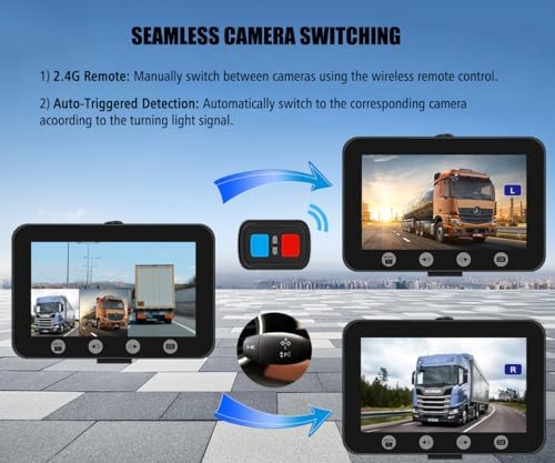- By connecting the trigger wire to your vehicle's turn signal wire activates the truck video recorder to automatically display a full-screen of the corresponding camera when turning. You can also choose to set up split-screen views or easily switch between display modes using the included 2.4G remote control. This safety camera system works well with a broad voltage range of vehicles from 12V to 30V, making it a perfect choice for cars, vans, semi-trucks, trailers, RVs, and more.