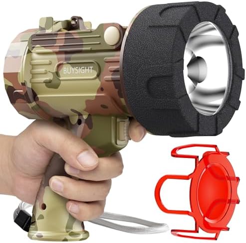 BUYSIGHT Rechargeable Spotlight Flashlight,1000000 LMS Hand held Spot Lights IP67 Waterproof led Flash Lights Boat Spotlight Torch with red Filter (Camouflage Grey)