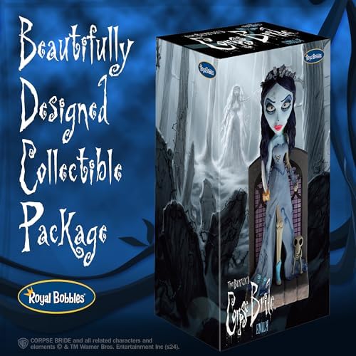 - CORPSE BRIDE EMILY BOBBLEHEAD: Bring the ethereal charm of Emily, voiced by Helena Bonham Carter, from Tim Burton's stop-motion classic "Corpse Bride" to your collection. This intricately designed bobblehead features Emily in her iconic tattered wedding gown and a crown of withered blue roses.
