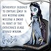 - HAUNTINGLY DETAILED BOBBLEHEAD: With Maggot perched on her shoulder and Victor’s beloved and fearless former pet, Scraps, by her side, this Royal Bobbles figurine showcases Emily wielding a sword in front of the cathedral’s glass stained window.
