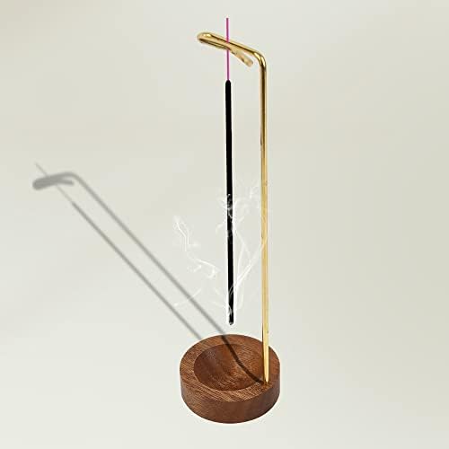 Soporte de Incienso para Palos y Recolector de Cenizas Quemador de Incienso con Base de Madera y Abrazadera de Latón Soporte de Incienso de Madera Invertido Hecho a Mano para Hogar, Oficina, Yoga y Meditación (Base Circular de Madera)