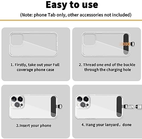 Phone Tether Tab for iPhone, Cell Phone Lanyard Patch, Phone Strap Replacement Part for All Full Phone Cases (Black)