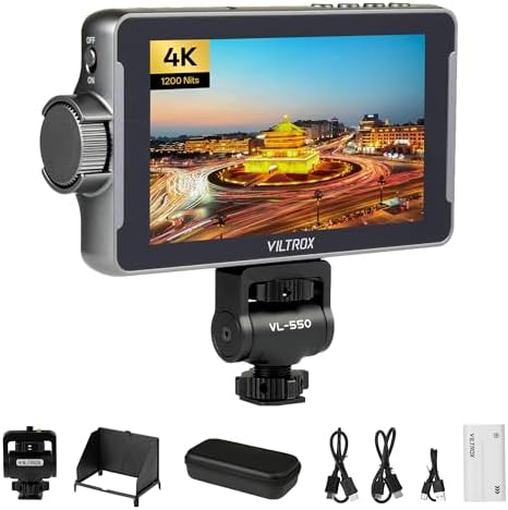 VILTROX DC-550 PRO Touchscreen Camera Video Monitor, 5.5 Inch 1200nits 4K HDMI in/Out Video Field Monitor Kit with Battery - On-Camera Touchscreen Monitor, 3D LUT, 1920X1080