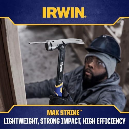 The IRWIN Max Strike 19 oz. High Velocity One Piece Steel Hammer is carefully engineered to be more efficient. It’s built from the grip up with tradespeople in mind. Lightweight, yet designed to strike like a heavier hammer. The 19 oz. is designed to have same striking effect as a 28 oz. hammer. Faster swing, more productive, yet less arm fatigue. Its ergonomic grip is built to reduce vibration and transfer less shock to the body.