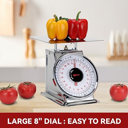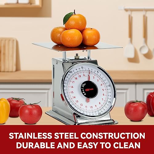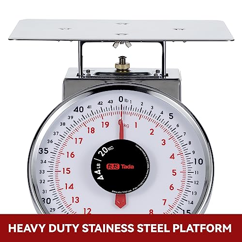 Tada 44 LBS Stainless Steel Mechanical Kitchen Scale Heavy Duty Portion-Control Food Scale Produce Scale with Stainless Steel Platform