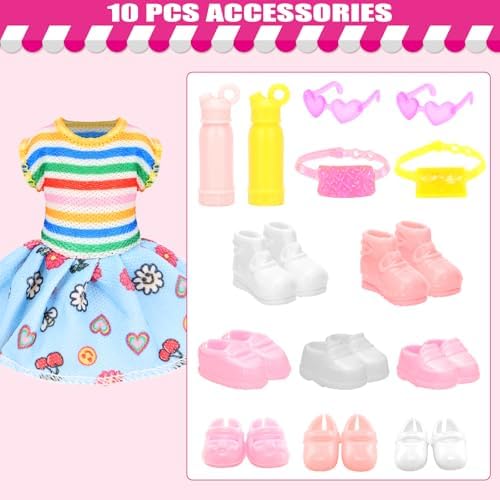 22 Pcs Mini 5 inch Doll Clothes and Accessories Including 4 Sets Fashion Dresses 4 Casual Tops and Pants Outifits 4 Swimsuits with 4 Shoes 2 Glasses 2 Shoulder Bag for 5-5.3 Inch Dolls