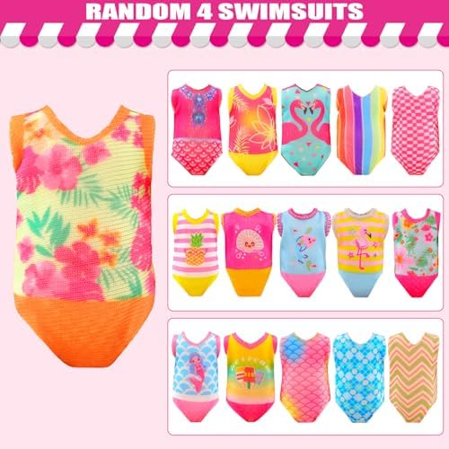 - Fit for 5 inch dolls( Bust: 6.5cm/2.56 inchs; Shoulder: 6.5cm/2.56 inchs; Buttocks: 7.2cm/2.8 inchs; High: 13.5cm/5.3 inchs) (Random Style).The package including 4 sets fashion dresses, 4 tops and pants, 4 swimsuits, 4 shoes(rose + pink + 2white), 2 pink glasses, 2 Inclined shoulder bag(pink + yellow), 2 bottles(pink + yellow)
