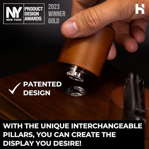 - INNOVATIVE WATCH & KNIFE DISPLAY — Things just got personal. This patented design combines our signature knife box and watch box, allowing you to display both watches and knives at the same time. With the unique interchangeable pillars, you can create the display you desire! The Combo Deck was a huge success on Kickstarter, backed by 400+ pledges and surpassing the initial goal by 400%!
