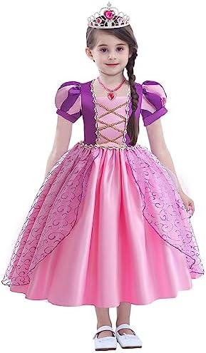 【Conjunto de Disfraz Rapunzel de 21 Piezas】---Nuestro conjunto de vestido de princesa incluye 21 piezas de vestido y accesorios (una peluca larga de Rapunzel, una corona de princesa, una varita, un collar, 2*brazaletes, un par de aretes, un anillo y 12 pinzas de mariposa). Tu pequeña podrá disfrutar de trajes de Rapunzel de pies a cabeza. Es perfecto para juegos de simulación y juego de roles de princesa, tus encantadoras niñas podrán realizar sus sueños de princesa. Vístete y escapa del torre para explorar el mundo exterior