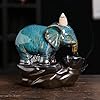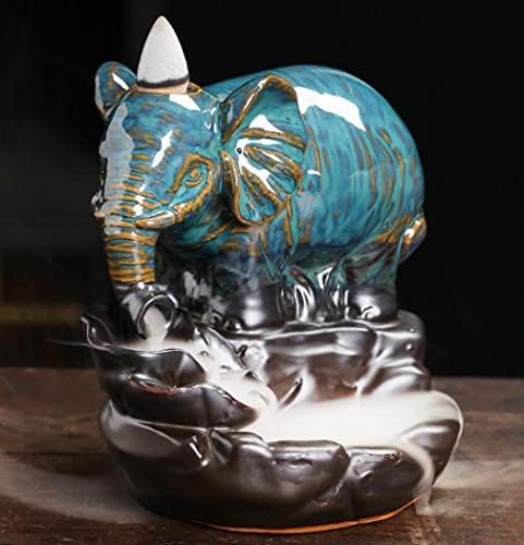 Quemador de incienso de contracorriente Comeon, Portainciensos de elefante hecho a mano, quemador de incienso cascada de cerámica, cencerro + 20 conos de incienso de contracorriente, 30 varillas de incienso, 1 pinza, 1 esterilla para meditación, decoración para el hogar