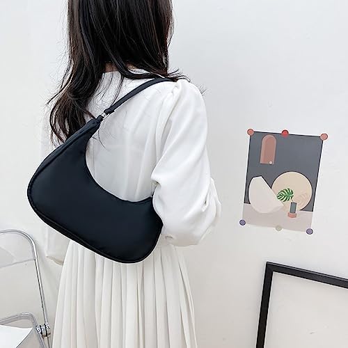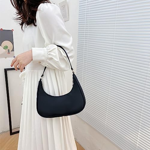 Shoulder Bags for Women, Nylon Shoulder Y2K Bag, Lady Underarm Bag, Mini Handbags with Pom Pom Keychain and Zipper Closure - Gift for Christmas, Birthday and Anniversary