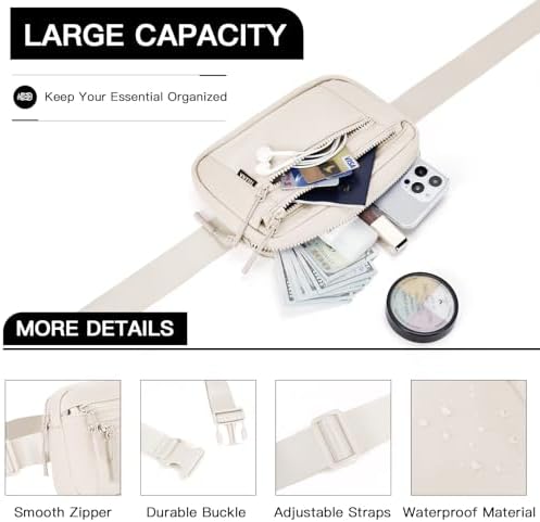 Telena Belt Bag for Women Fanny Pack Cross Body Bag Fashion Waist Pack with Adjustable Strap Beige