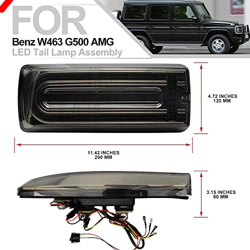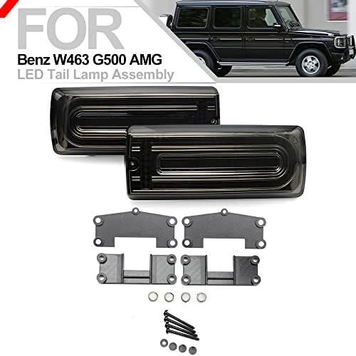 LED Dynamic Tailights Turn Signal Lights Assembly Brake Running Lamps for Be'nz G-Class W463 G500 G550 G55 G63 AMG 2002-2018 Tail Lights Passenger and Driver Side Smoked Lens Packing Includes: 2X LED Tailights Assembly 2PCS=1SET Features: 1.Lens Color: Smoked 2.Led Color: Red/Amber 3.Super bright,faster on/off response time for driving safety. 4.3X brighter than the stock filament bulb tail lights. 5.Brand new and high quality. 5.Three functions: Brake light, Running light, Dynamic trun signal light. Fitment: compatible with 2002-2018 Be'nz G-Class W463 G500 G550 G55 G63 AMG OEM PART NUMBER: A4638200964 A4638201064 A4638201364 A4638201464 A4638201564 A4638201664 A4638201964 A4638202064 Note: Please allow 1-3mm error due to manual measurement. The real color of the item may be slightly different from the pictures shown on website caused by many factors such as brightness of your monitor and light brightness.