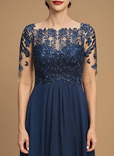 Women's Lace Applique Mother of The Bride Dresses Tea Length Chiffon Wedding Guest Evening Gown