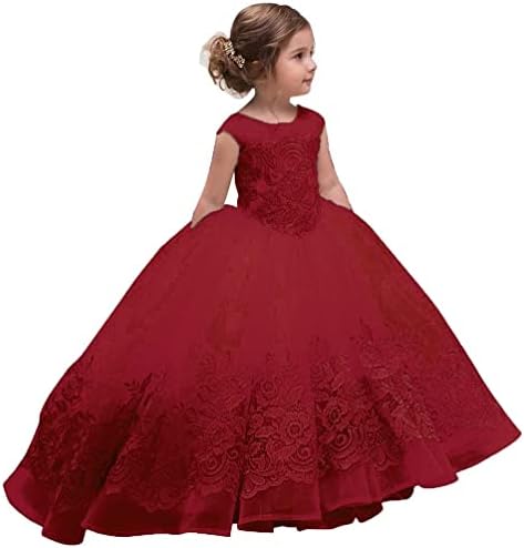 Lace Appliques Flower Girl Dresses for Wedding Kids Christmas Communion Ball Gowns