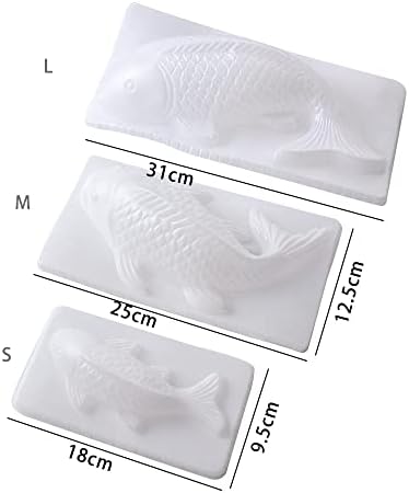 - Size: approx 31 x 31cm/25 x 12.5cm/18 x 9.5cm. The 3D Koi fish mold comes in 3 sizes, making it perfect for a variety of uses and occasions.