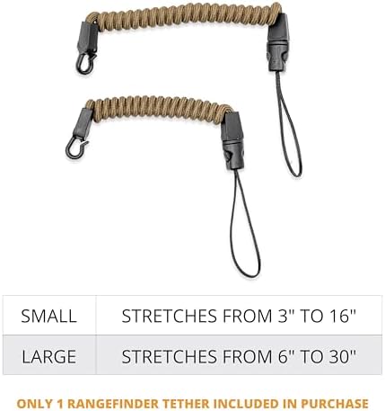 • Elastic Coiled Design - Stretches from 3" to 16" (Small) or 6" to 30" (Large) providing flexible security that won't restrict movement while keeping your rangefinder within easy reach during hunting