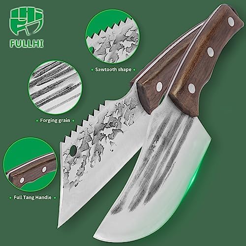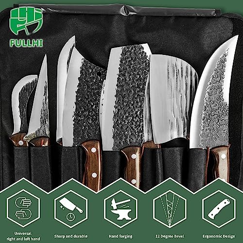 FULLHI Portable 15pcs Butcher knife set cleaver with knifebag woodhandle Hand Forged chef knife Boning Knife High Carbon Steel viking knife set For Kitchen,BBQ