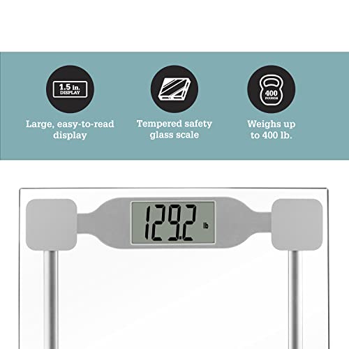 Thinner by Conair Scale for Body Weight, Digital Bathroom Scale in Clear Tempered Glass