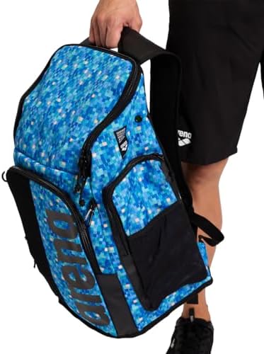 Los nadadores adoran esta mochila ultra inteligente y llamativa! La espaciosa, cómoda y súper elegante mochila ARENA Spiky III de 45 es especialmente diseñada para nadadores. El compartimento principal superior con carga superior, tres bolsillos con cremallera, bolsillos laterales de malla y una bolsa de baño separada para prendas húmedas aseguran un excelente espacio de almacenamiento para todo tu equipo de entrenamiento. Equipada con compartimentos de malla y una tela repelente al agua para mantener la humedad bajo control. El panel trasero acolchado y transpirable y las correas ergonómicas para los hombros proporcionan un confort sobresaliente. El fondo reforzado protege el contenido almacenado de los pisos húmedos. Disponible en varios diseños llamativos y divertidos. Dimensiones: 49.5 cm x 36.1 cm x 26.9 cm, capacidad de 45L.